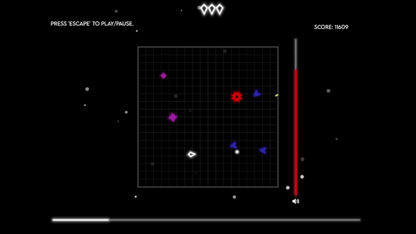 Here you can see some of the gameplay in action. The screen gets dimmer and the music gets quieter if you allow red spikes to be on the screen too long.